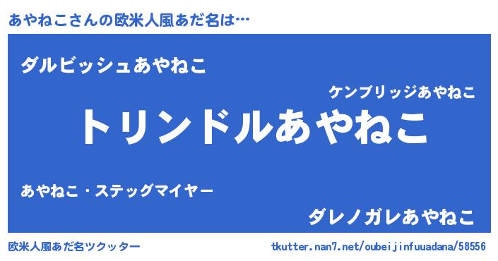 | 女子向けラノベタイトル風あだ名 | 『あやねこの玉の輿計画!』 |