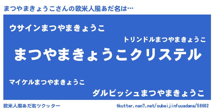 | 意味不明あだ名 | 『まつやまきょうこフォーエバー』 |