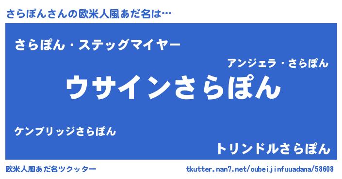 | 男性向けラノベタイトル風あだ名 | 『さらぽんの嫁は女の子じゃないと思った?』 |
