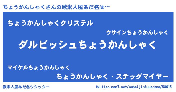 | 胡散臭い通販商品みたいなあだ名 | 『来世でも幸せになれる水素水…その名も「ちょうかんしゃく」』 |