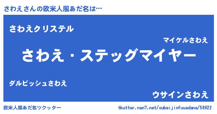 | 男性向けラノベタイトル風あだ名 | 『うちのさわえが世界を掌握している!』 |
