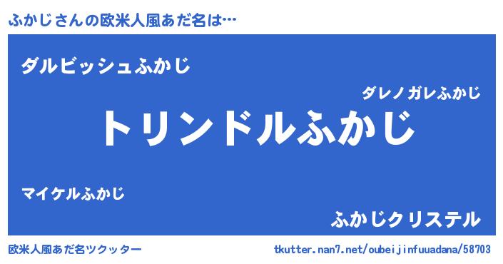 | 男性向けラノベタイトル風あだ名 | 『ふかじ~年齢イコール彼女いない歴の魔法使い~』 |