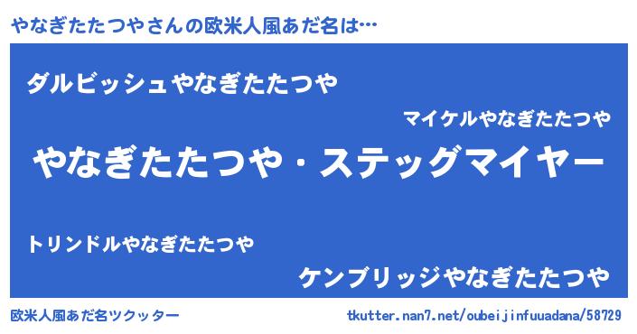 | ヘコむあだ名 | 『やなぎたたつや(小並感)』『やなもー』 |