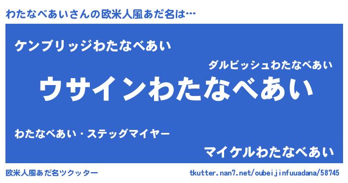 | 意味不明あだ名 | 『とにかく怪しいわたなべあい』 |
