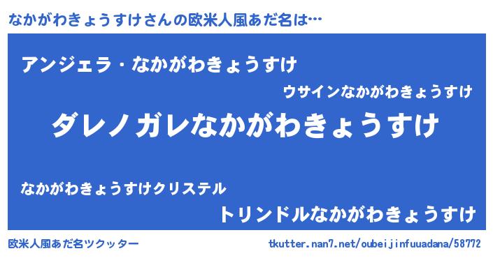 | 女子向けラノベタイトル風あだ名 | 『悪役なかがわきょうすけに転生したようですが、知った事ではありません』 |