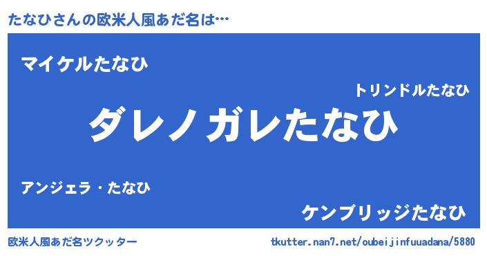 | 男性向けラノベタイトル風あだ名 | 『魔弾の王とたなひ』『たなひの憂鬱』 |