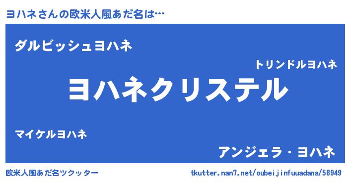 | 女子向けラノベタイトル風あだ名 | 『ヨハネの雑貨屋さん』 |