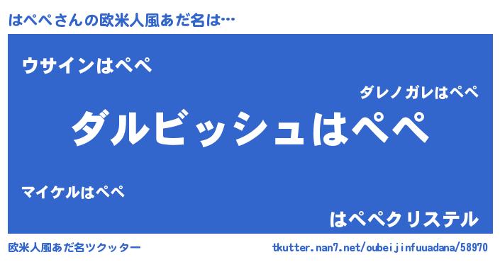 | ピコ太郎風あだ名 | 『ピコハ郎』『ハペ二郎』『ピハ八郎』 |