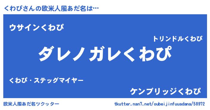 | 男性向けラノベタイトル風あだ名 | 『この素晴らしい世界にくわぴを!』 |