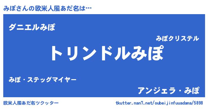 | 男性向けラノベタイトル風あだ名 | 『ミポスレイヤー』『はたらくみぽさま!』 |