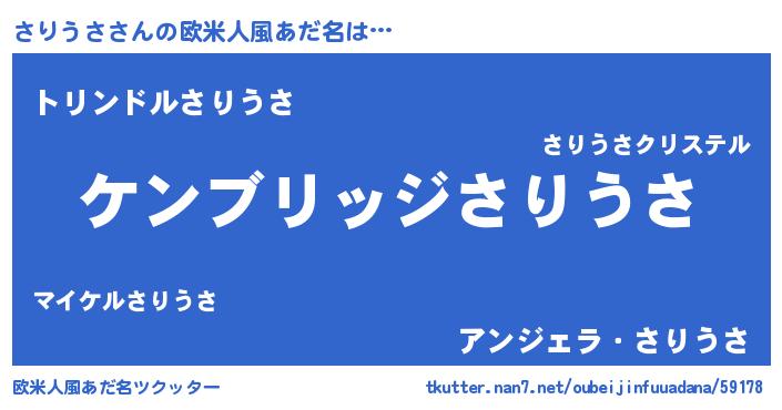 | 男性向けラノベタイトル風あだ名 | 『Re:さりうさから始める異世界生活』 |