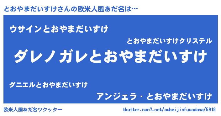 | 男性向けラノベタイトル風あだ名 | 『魔弾の王ととおやまだいすけ』 |