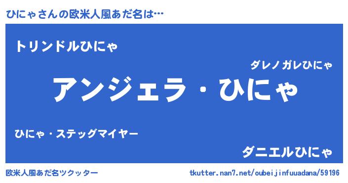 女子向けラノベタイトル風あだ名 | 『横柄ひにゃと宰相陛下』『ひにゃ恋絵巻』 |