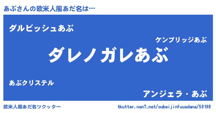 | 意味不明あだ名 | 『住所不定無職あぶ(77歳)』『永久保存あぶ』 |
