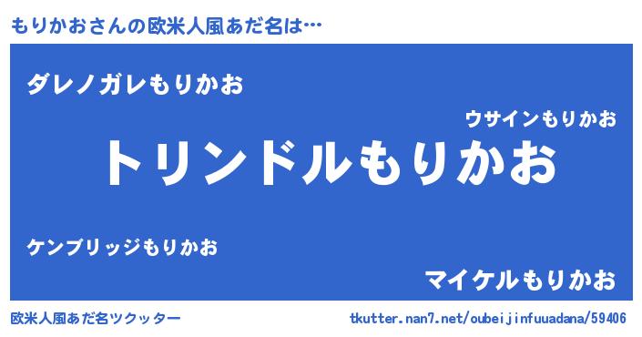 | 男性向けラノベタイトル風あだ名 | 『もりかお~年齢イコール彼女いない歴の魔法使い~』 |