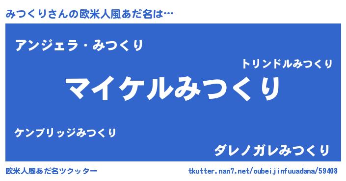 | 男性向けラノベタイトル風あだ名 | 『みつくりの憂鬱』『ミツクリスレイヤー』 |