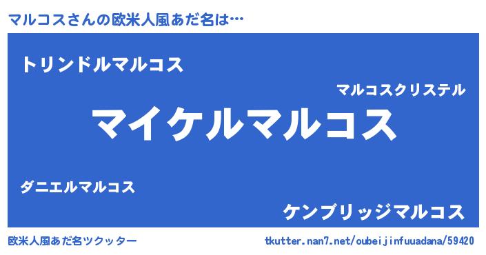 | 男性向けラノベタイトル風あだ名 | 『マルコスアートオンライン』 |
