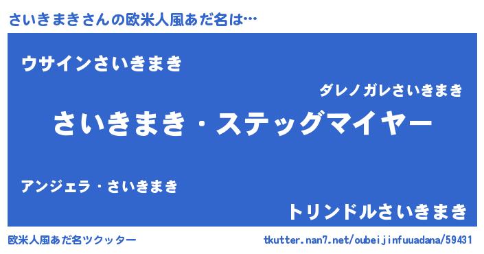 | 男性向けラノベタイトル風あだ名 | 『冴えないさいきまきの育てかた』 |