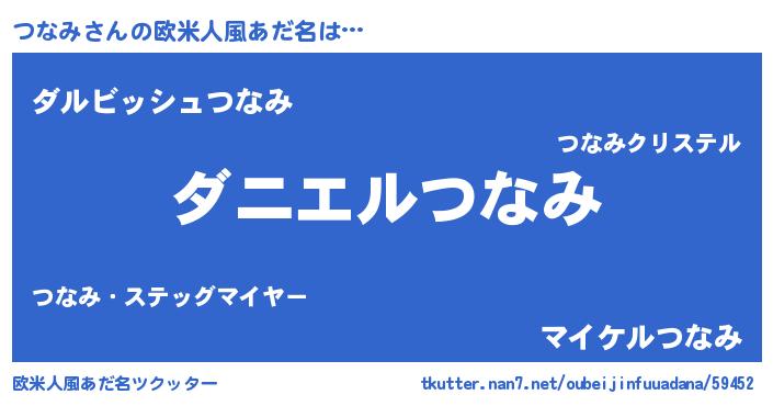 | 女子向けラノベタイトル風あだ名 | 『死神つなみの再婚』『つなみの契約王妃』 |