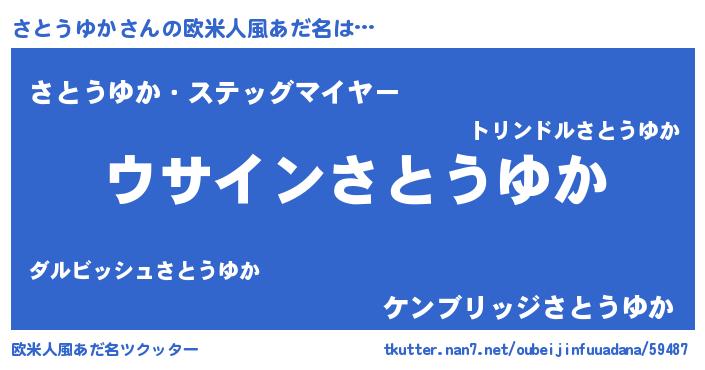 | 女子向けラノベタイトル風あだ名 | 『さとうゆかの卵を拾いまして』 |