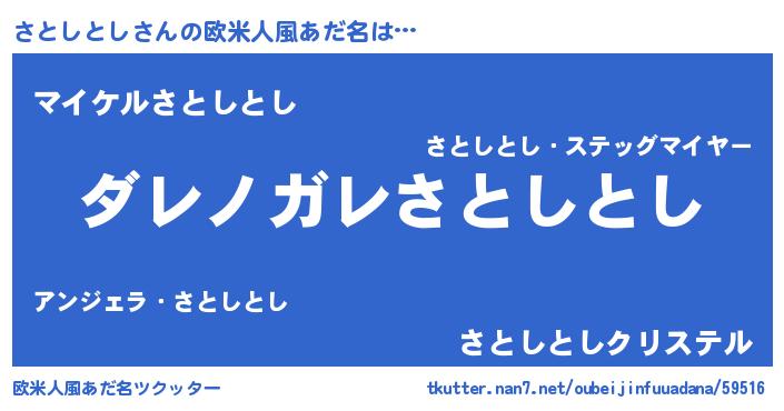 | 男性向けラノベタイトル風あだ名 | 『魔弾の王とさとしとし』 |