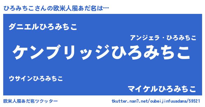 | 男性向けラノベタイトル風あだ名 | 『Re:ひろみちこから始める異世界生活』 |