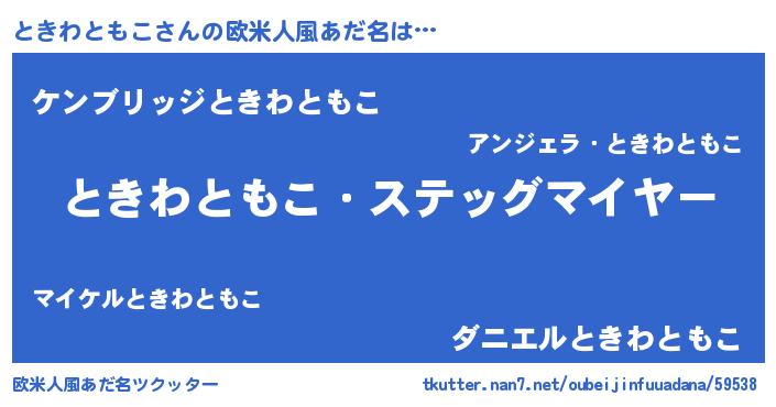 | ヘコむあだ名 | 『ときもー』『ときわともこ(苦笑)』 |