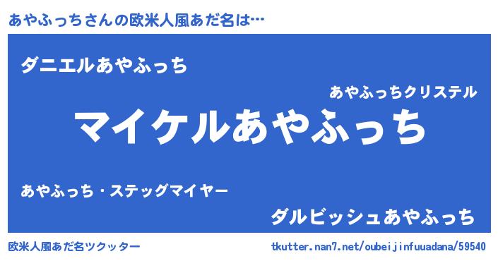 | 男性向けラノベタイトル風あだ名 | 『アヤフッチアートオンライン』 |