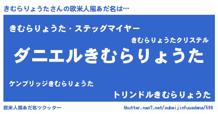 | 女子向けラノベタイトル風あだ名 | 『きむらりょうた夫妻のなれそめ』 |