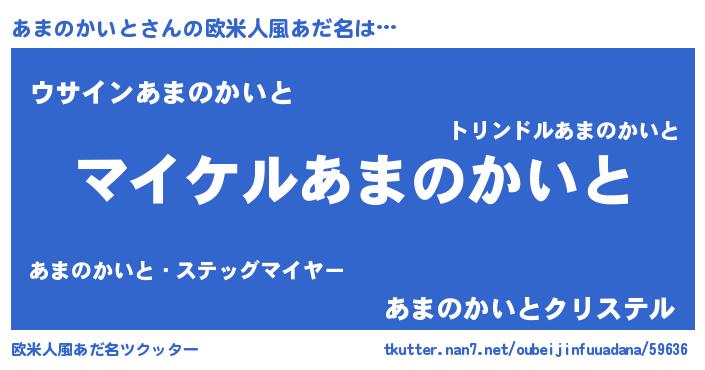 | 男性向けラノベタイトル風あだ名 | 『アマノカイトアートオンライン』 |