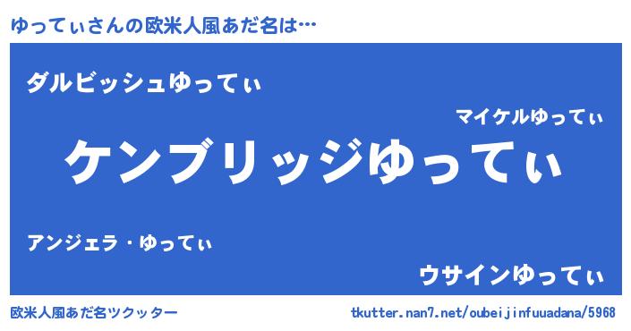 | 男性向けラノベタイトル風あだ名 | 『Re:ゆってぃから始める異世界生活』 |