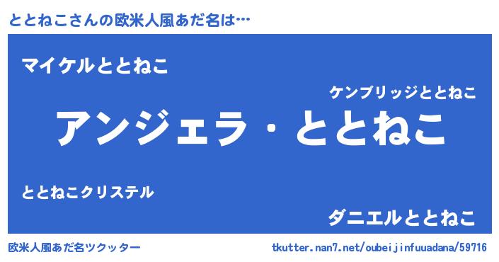 | 男性向けラノベタイトル風あだ名 | 『ととねこに滅ぼされるだけの簡単なお仕事です』 |