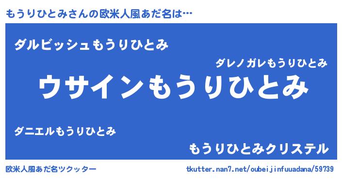 | 男性向けラノベタイトル風あだ名 | 『もうりひとみの嫁は女の子じゃないと思った?』 |