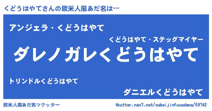 | ヘコむあだ名 | 『くどうはやて(笑)』『くどにー』 |