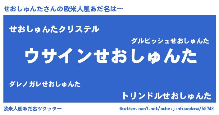 | 男性向けラノベタイトル風あだ名 | 『せおしゅんたの嫁は女の子じゃないと思った?』 |
