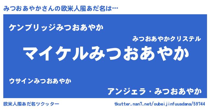 | 男性向けラノベタイトル風あだ名 | 『ミツオアヤカアートオンライン』 |