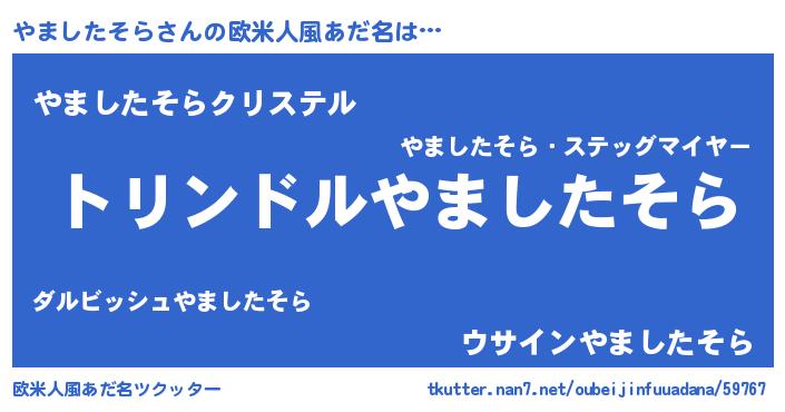 | 男性向けラノベタイトル風あだ名 | 『やましたそら~年齢イコール彼女いない歴の魔法使い~』 |