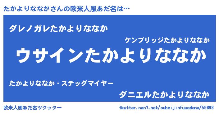 | 男性向けラノベタイトル風あだ名 | 『たかよりななかの嫁は女の子じゃないと思った?』 |