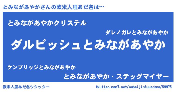 | 男性向けラノベタイトル風あだ名 | 『とみながあやかという概念が存在しない退屈な世界 』 |