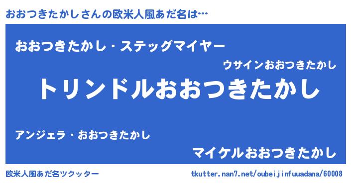 | 男性向けラノベタイトル風あだ名 | 『オオツキタカシスレイヤー』 |