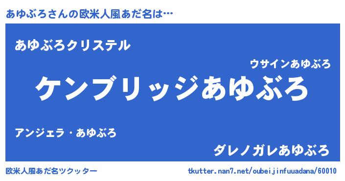 | 男性向けラノベタイトル風あだ名 | 『Re:あゆぶろから始める異世界生活』 |