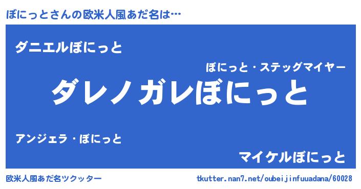 | 男性向けラノベタイトル風あだ名 | 『この素晴らしい世界にぼにっとを!』 |