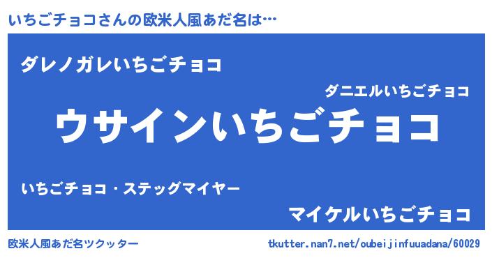| 男性向けラノベタイトル風あだ名 | 『いちごチョコの嫁は女の子じゃないと思った?』 |