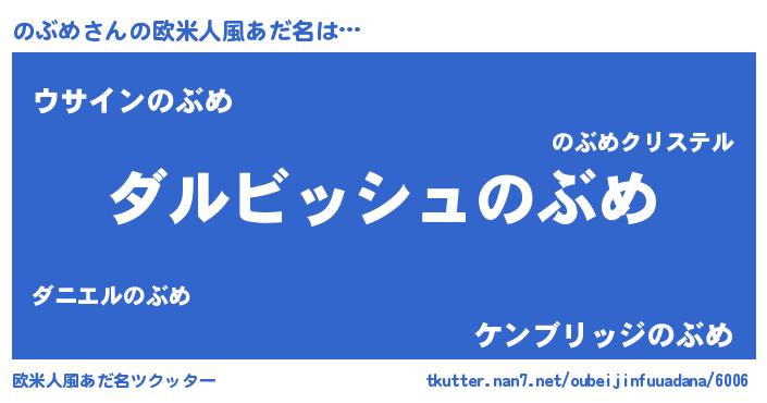 | 男性向けラノベタイトル風あだ名 | 『のぶめという概念が存在しない退屈な世界 』 |