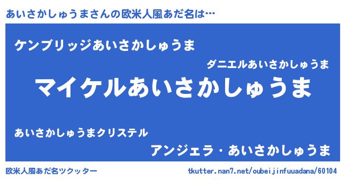 | ヒーロー風カッコイイあだ名 | 『スーパーアイサカシュウマ』 |