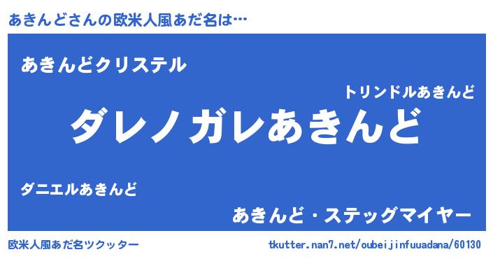 | 意味不明あだ名 | 『住所不定無職あきんど(77歳)』 |