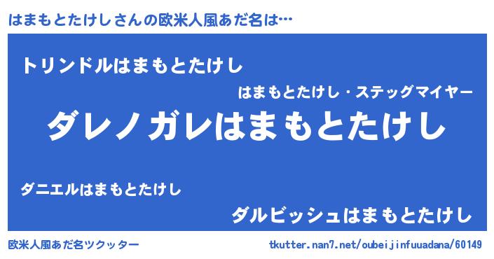 | 意味不明あだ名 | 『住所不定無職はまもとたけし(3歳)』 |