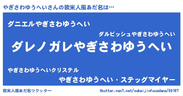 | 男性向けラノベタイトル風あだ名 | 『この素晴らしい世界にやぎさわゆうへいを!』 |