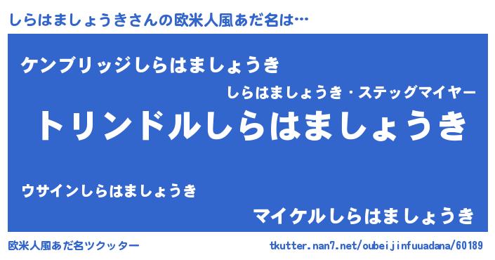 | 男性向けラノベタイトル風あだ名 | 『しらはましょうき~年齢イコール彼女いない歴の魔法使い~』 |