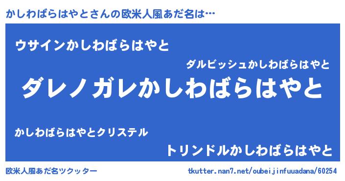 | ヘコむあだ名 | 『かしぷりん』『かしわばらはやと(震え声)』 |